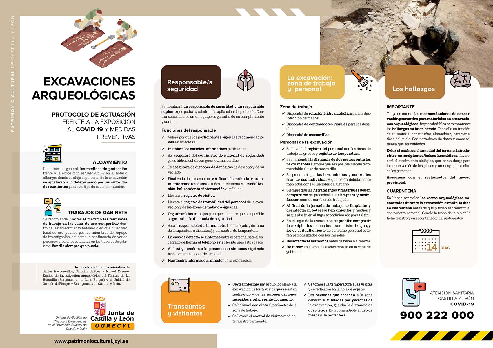 En los tiempos confusos del COVID, el equipo de excavación del túmulo de La Horquilla, principalmente Javier Basconcillos, diseñó un protocolo de actuación frente a la exposición al virus. la Junta de Castilla y León fue receptiva y elaboró a su vez unas recomendaciones que fueron distribuidas a las demás intervenciones arqueológicas previstas en la Comunidad Autónoma.