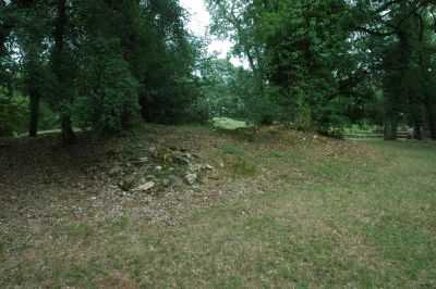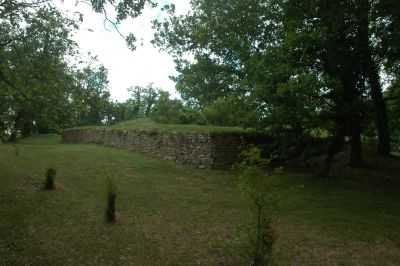 flanco Este de una alargada estructura de piedras y tierra.