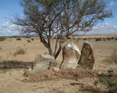 De nuevo se vuelve a producir en Fuenteliante el esquema de las lajas hincadas como único resto de la construcción megalítica. En la foto vemos los vestigios del Valle de las Cañas, dominando de nuevo un cercano humedal en el que abreva el ganado. Coordenadas (29T): x:0702945 Y:4528986.